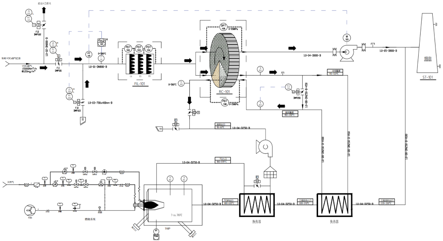 這種工藝凈化效率高,設(shè)備運行穩(wěn)定,后期維護(hù)簡單方便,但對工藝設(shè)計要求也相對較高。