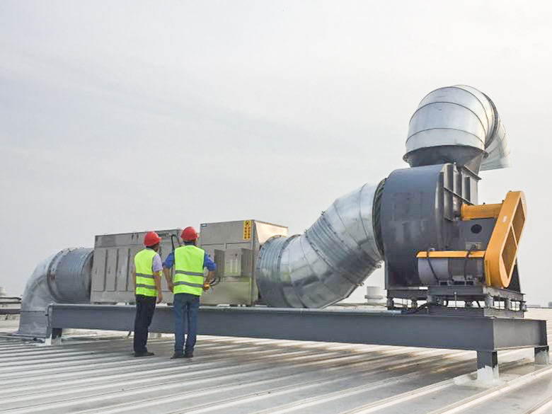 本項(xiàng)目是對(duì)紡織行業(yè)化纖車間生產(chǎn)過程中產(chǎn)生的廢氣進(jìn)行收集減排處理,化纖車間作業(yè)時(shí)產(chǎn)生的約35000m3/h的有機(jī)廢氣,主要污染物:油霧(非甲烷總烴)≤120mg/m3。本次鑫藍(lán)環(huán)保采用1套35000CMH的初效過濾+板式靜電吸附油煙凈化的組合凈化工藝對(duì)本項(xiàng)目化纖車間廢氣處理,凈化后的潔凈氣體經(jīng)引風(fēng)機(jī)送入排放煙囪對(duì)空達(dá)標(biāo)排放。