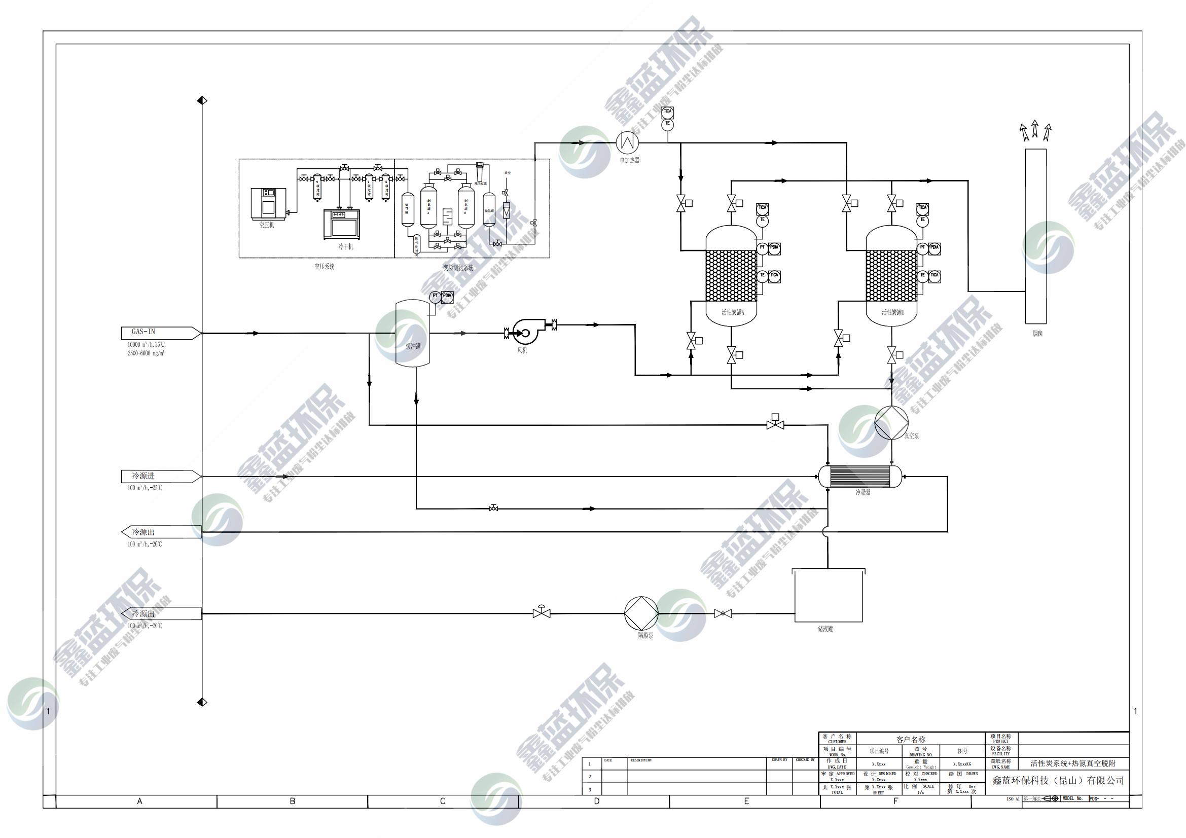 在工業(yè)廢氣處理過程中有些生產(chǎn)企業(yè)會(huì)用到活性炭吸附脫附冷凝回收工藝來處理廢氣,脫附分為蒸汽脫附、電加熱脫附、氮?dú)饷摳降?。通常工廠的廠區(qū)存在多個(gè)廢氣排放點(diǎn),VOCs的濃度分布不均等特點(diǎn),單獨(dú)的處理工藝很難解決全廠的VOCs排放問題。所以我們需要利用組合工藝來處理廢氣。這里我們昆山鑫藍(lán)環(huán)保簡(jiǎn)單地介紹下活性炭吸附氮?dú)饷摳?/font>+冷凝回收。