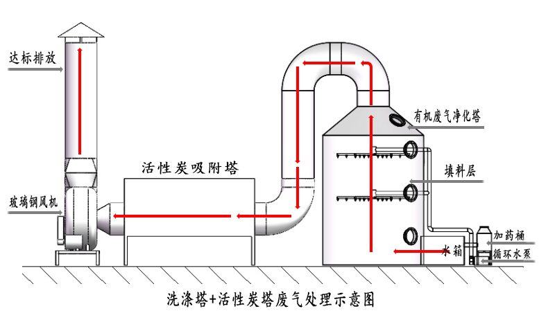含塵氣體由風機提供動力,正壓或負壓進入活性炭吸附器,由于活性炭固體表面上存在著未平衡和未飽和的分子引力或化學健力,因此當此固體表面與氣體接觸時,就能吸引氣體分子,使其濃聚并保持在固體表面,污染物質從而被吸附,廢氣經過活性炭吸附塔后,進入設備排塵系統,凈化氣體高空達標排放。