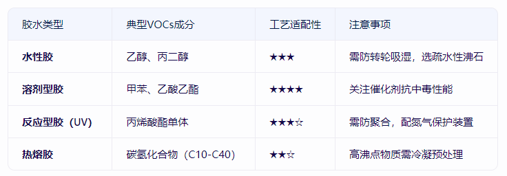 膠水廢氣可能含硅氧烷、高沸點物質(zhì)(如某些樹脂單體),需配置前置冷凝器或活性炭吸附床,防止轉(zhuǎn)輪孔道堵塞。