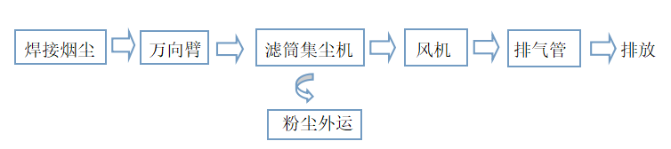 焊機焊接操作過程中產生的焊接煙塵,主要成分為顆粒物,故處理工藝采用濾筒除塵器