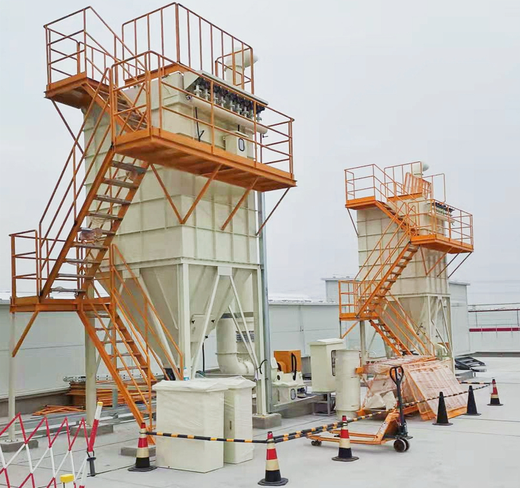 4、體積相同的布袋除塵器,梯形除塵器布袋比圓袋可多20%—40%的過濾面積。梯形布袋可以從除塵器側面水平抽出,頂部不需要有較高的空間;