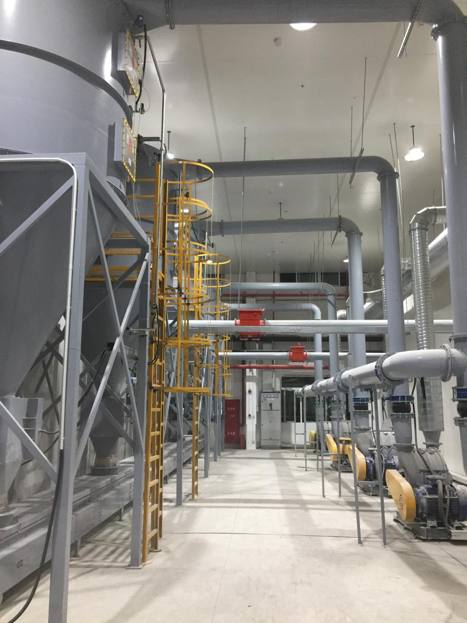 用于通過氣動輸送裝置收集灰塵的袋式除塵器具有較大的空氣體積,高的粉塵濃度和箱體的耐壓性,因此圓柱形狀很大。有條件的公司可以用塑料板過濾器代替袋式過濾器。圓柱形盒入口切向地定向以提供分離,并且許多旋轉(zhuǎn)式反吹袋過濾器是這種類型。有時灰斗是旋風的形式。氣動輸送系統(tǒng)的袋式除塵器,由于粉末量大,灰斗容積和排灰口直徑應(yīng)設(shè)計得更大,除塵裝置的容量應(yīng)足以避免殘留粉末在灰桶里。