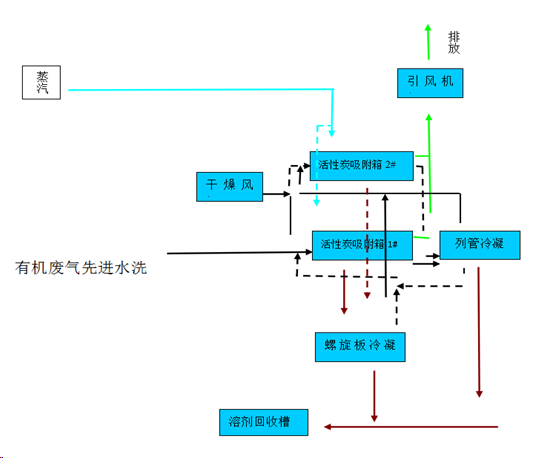 4、對于水溶性大或易水解有機溶劑,采用活性炭吸附-氮氣脫附-溶劑回收工藝,回收產(chǎn)品中水含量低,溶劑品質(zhì)高、可降低運行成本;