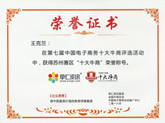 歷經(jīng)數(shù)月,第七屆電子商務(wù)蘇州十大牛商的評選活動已落下帷幕,于3月10日,被評為蘇州十大牛商的名額已揭曉,我司鑫藍(lán)副總經(jīng)理克蘭名列其中,公司全體人員對此倍感榮幸。特別感謝,牛商團(tuán)隊的全體人員對我司鑫藍(lán)的支持及新浪微博、現(xiàn)代快報為我司鑫藍(lán)的報道。